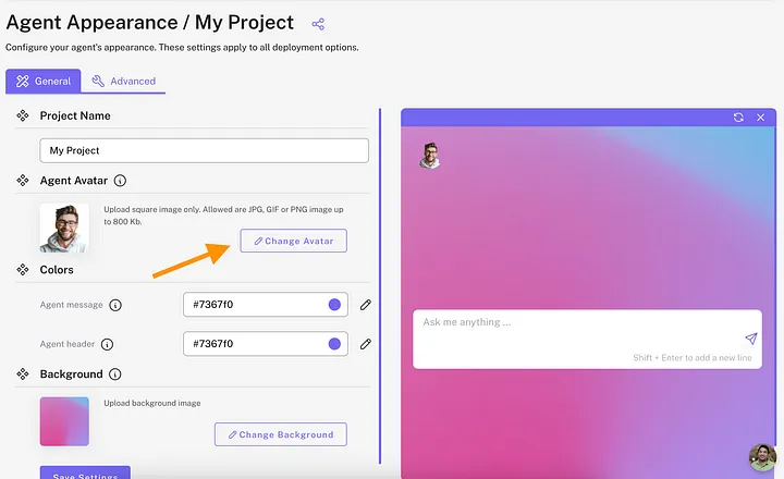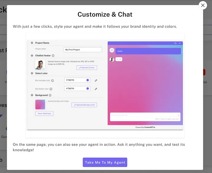 Once the search completes and your sitemap is found, click on Create Project. Now the initial version of your chatbot is ready! Then it’s time to customize it to match your brand and needs.