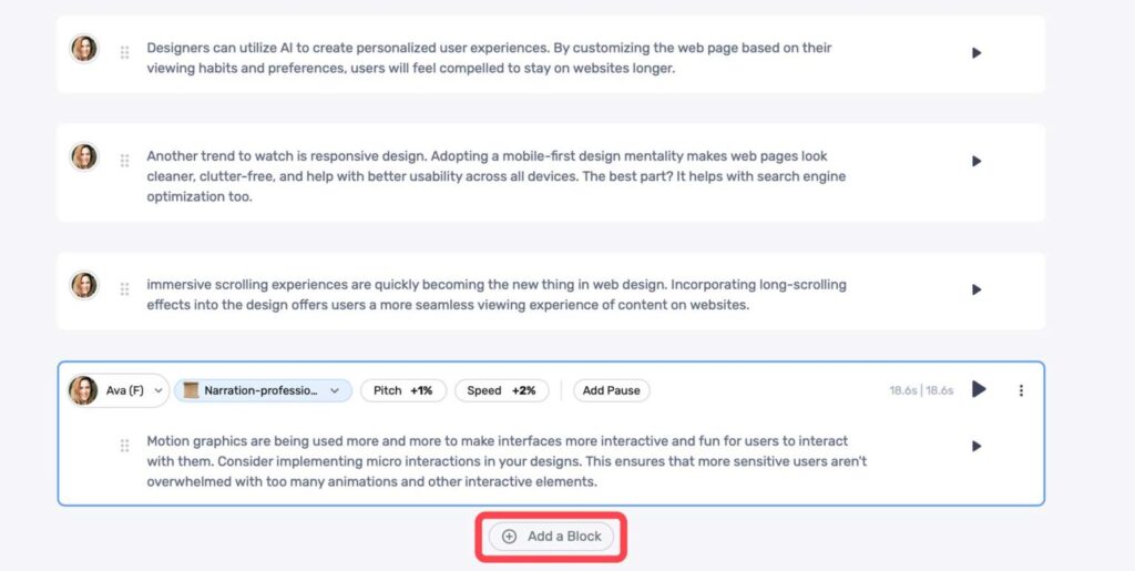 Click the + Add a Block button to add more text.