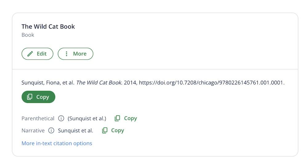 - Search for the name of the book, magazine, or URL you’d like to cite.